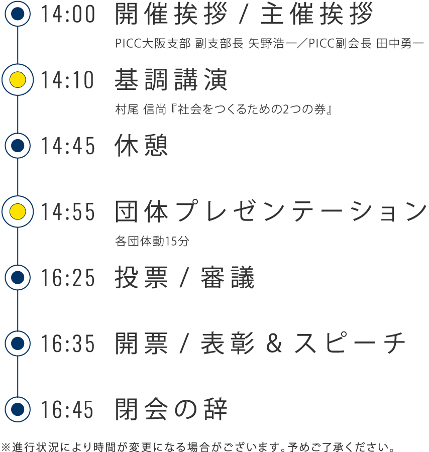 各団体と各法人に、それぞれがおこなっている社会性の高い活動について発表頂き、その中でもっとも優秀な活動をご来場の方全員による投票で決定いたします。プレゼンを通して、社会貢献活動に対する共感と、今後の活動やビジネスにおけるヒントが見つかるプレゼン大会となっております。