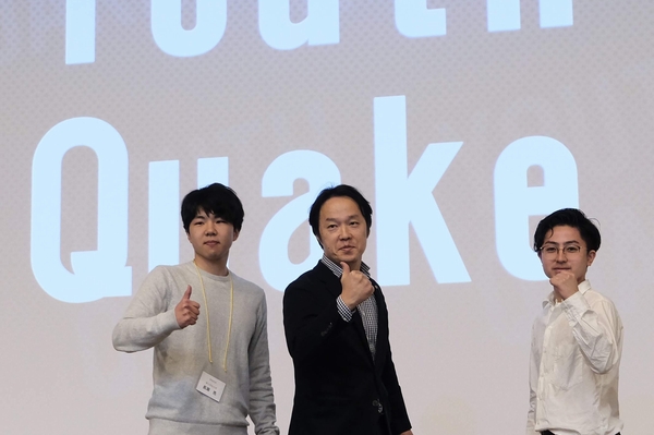 福岡支部チームは、お揃いのTシャツで登壇し、抜群のチームワークでフォーラムでの取り組みや仕掛けについて説明しました。福岡では企画・準備・当日の運営すべてに学生が1年近くかけて携わっており、学生の立ち位置が単なる参加者にとどまらない点をアピール。フォーラムの熱は終了後も冷めやらず、PICC会員企業でのインターンシップや「王道経営」の学びなど、その後も活動が点から線へ、線から面へと広がっていることが発表されました。また、マイコミュニティフォーラムの共通タイトルである“YouthQuake”を使ったオリジナルコールは会場全体を巻き込み、聴衆・審査員を魅了しました。