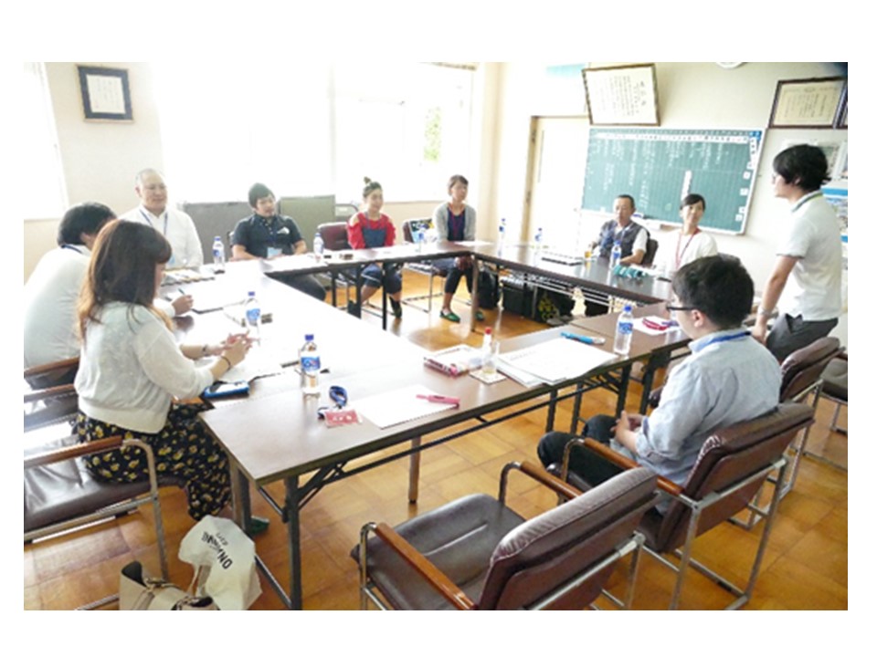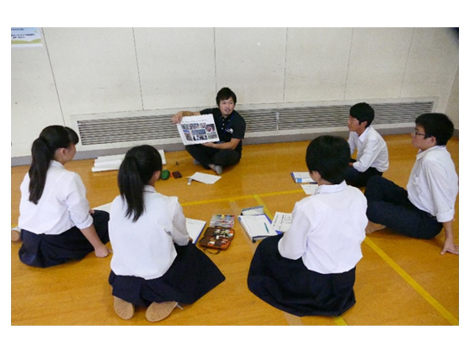講話が終わってからそのグループに全員共通のテーマを出され、生徒とディスカッションをした。